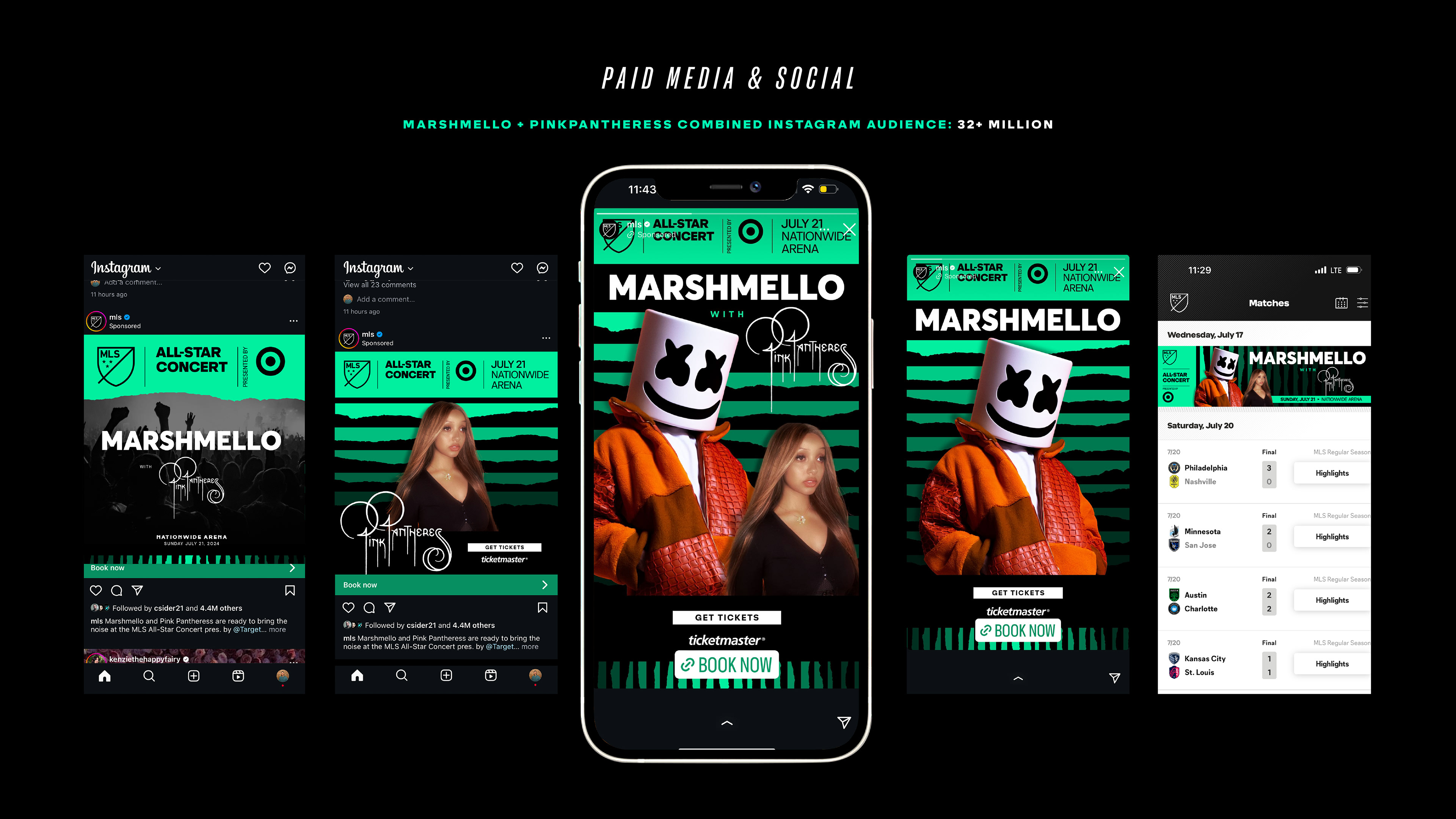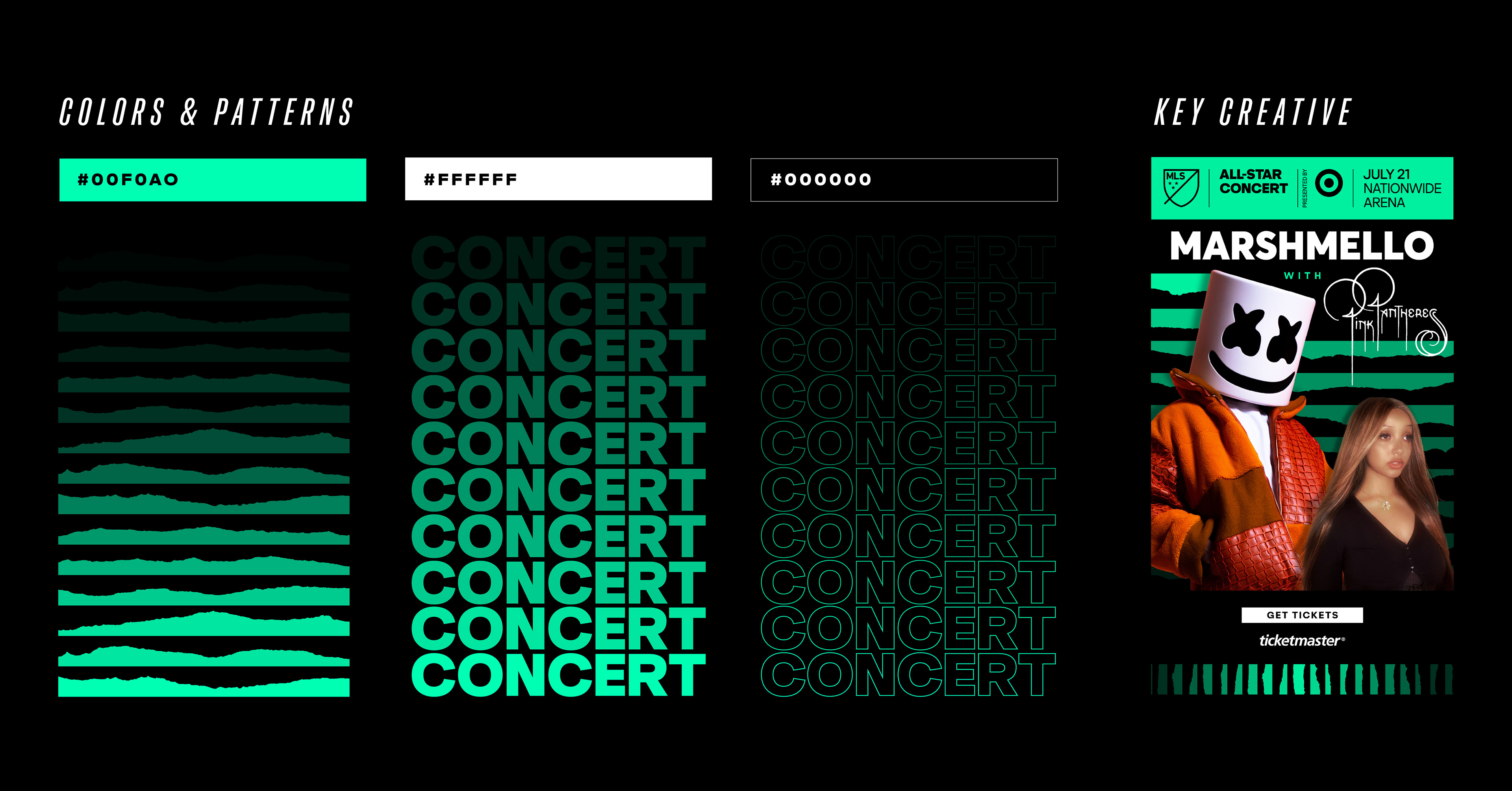 I led the creative direction for the MLS All-Star Concert presented by Target, overseeing concept development, partner coordination, and the approval process for all creative. I supported the production team on-site and managed hundreds of deliverables, including in-arena static and motion LEDs, exterior signage, and paid media promotions.